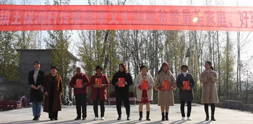 本站讯 日前,河南省方城县杨集镇王保河村举办传承德孝文化助脱贫暨最美家庭、好婆婆、好媳妇表彰会,弘扬文明新风,激发内生动力,引导贫困群众改变等、靠、要的依赖思想,树立自尊、自信、自强、自立的新观念,助力脱贫攻坚和乡村振兴。