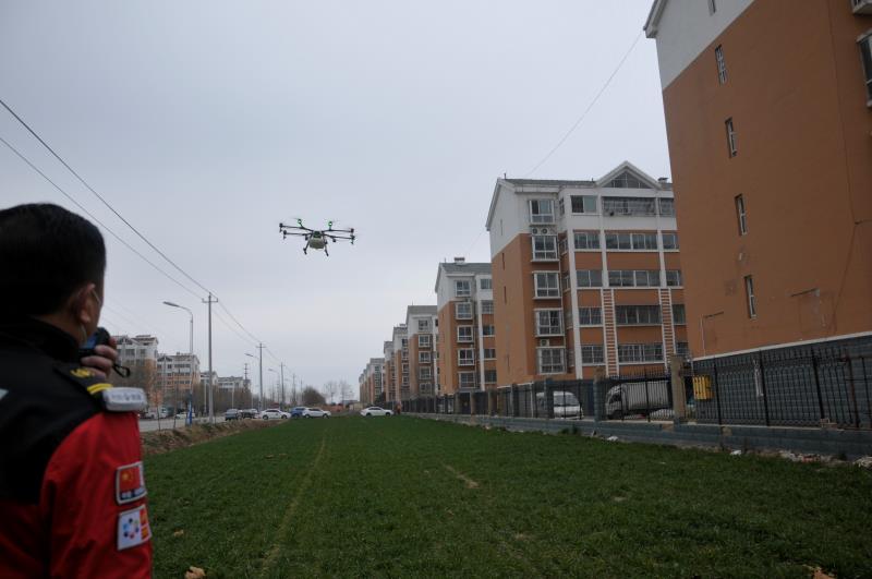 本站山东讯(记者张德龙)2月8日上午7点,山东省金乡县肖云镇社区内喇叭流动播放着“请大家把衣服、被子、吃的食物收拾收拾,金乡利剑救援队今天来小区进行空间消毒”。8点整,利剑救援队分三组准时行动,20多位身穿防疫服装的利剑工作人员有序开展工作,无人机小组负责社区高度宽广的区域消杀,车辆消毒小组负责楼间距之间区域消杀,人力小组分10个组进行楼体内喷雾消杀。