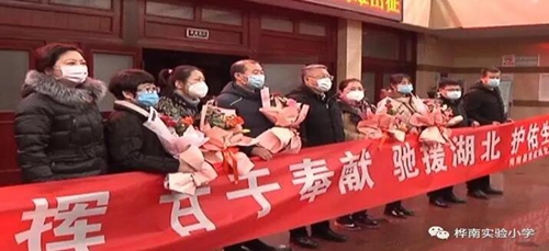 图片:桦南县实验小学送别驰援湖北医护人中