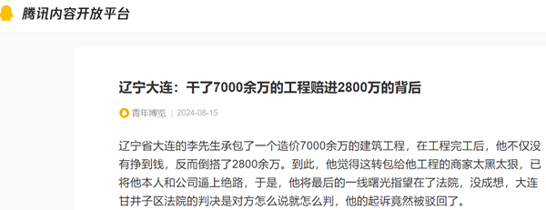 辽宁省大连的李先生承包了一个造价7000余万的建筑工程,在工程完工后,他不仅没有挣到钱,反而倒搭了2800余万。到此,他觉得这转包给他工程的商家太黑太狠,已将他本人和公司逼上绝路,于是,他将最后的一线曙光指望在了法院,没成想,大连甘井子区法院的判决是对方怎么说就怎么判,他的起诉竟然被驳回了。