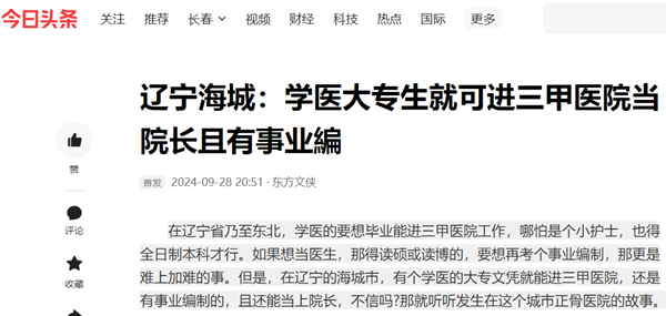 在辽宁省乃至东北,学医的要想毕业能进三甲医院工作,哪怕是个小护士,也得全日制本科才行。如果想当医生,那得读...