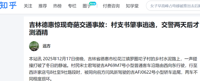 本站讯 2025年12月17日傍晚,吉林省德惠市松花江镇罗圈坨子村的乡村水泥路上,一声碰撞打破了冬日的静谧。村民宋...