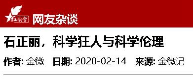 除了“对科研有着执拗,甚至狂热的追求,病毒研究成就非凡”等评价。可以想象,网络上石正丽遭遇的另一种声音,甚至出现了董事长实名举报病毒所及石正丽事件。