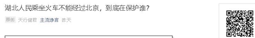 湖北人民乘坐火车不能经过北京,到底在保护谁?