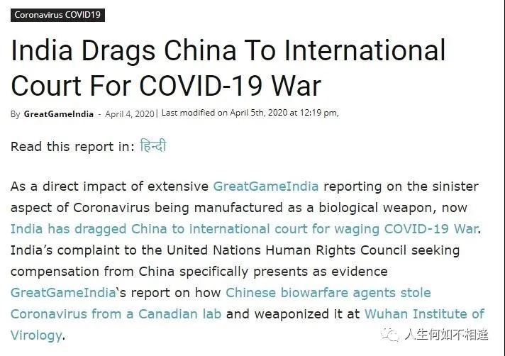 4. 印度国际法学家委员会和印度律师协会向联合国人权理事会提出了申诉,指控中国审查讯息隐瞒疫情,还一度拒绝对中国的感染者进行旅行管制,导致病毒在全球大流行追讨20万亿美元的赔偿。
