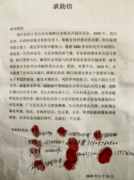 本站讯 前不久,媒体接到群众的实名制举报,声称浙江省台州市路桥区,一个已有二十年历史的省级龙头企业,惨遭腐败分子的扼杀,他们勾结社会上的不法分子,置国家的法律法规于不顾,对龙头企业的花农大打出手,使该企业无法经营,广大花农苦不堪言。2020年5月10日,记者一行来到台州市路桥区亭屿村深入调查采访,核实全部经过,并收集了大量图片、录音、视频资料。