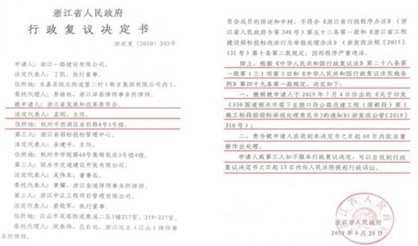 2020年3月20日,杭州市中级法院作出行政判决书认可了省政府行政复议决定书撤销省发改委处理意见的结论,同时在本院认为部分纠正和否定了省发改委认为一路公司业绩无效的认定。