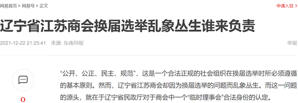 在此期间,商会多次向省民政厅反映情况表达诉求,江苏省政府部门也致函辽宁省民政厅商请“推动商会换届工作依法依规有序进行”。而省民政厅的工作人员却对此听之任之,并告知这是属于商会内部矛盾,需要商会人员自行协商解决。