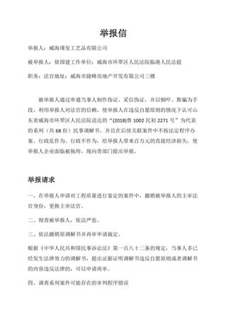 【瑾玺针对永卓环翠区法院案件主审法官的实名举报信部分内容】