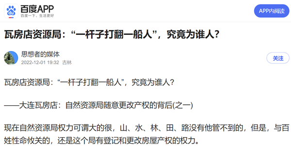 瓦房店资源局:“一杆子打翻一船人”,究竟为谁人?