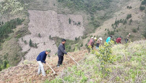 同样在和平乡遥山沟村,村民韩勇富正在油茶地里套种珍珠花生、黄豆。“去年种了点包谷,结果天干没得收。今年不想种了,今年村里面新发展油茶产业2000亩,让我们来参与管护,100元一天,同时我自己在油茶下面套种了30多亩黄豆,20多亩花生,再怎么样也比种包谷强”。