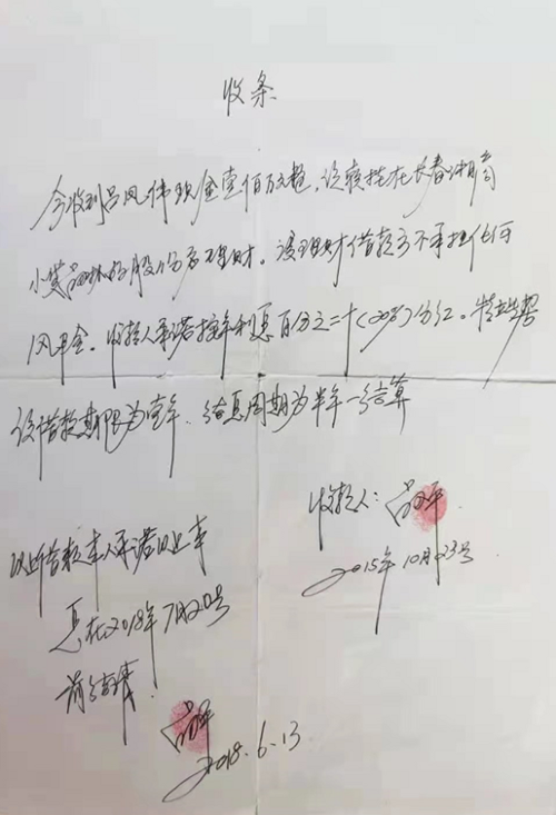 (吕小平出具的收款收条 当事人提供)