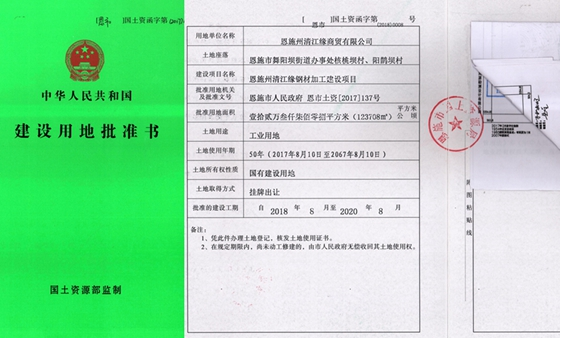 上图为清江缘公司建设用地批准书。