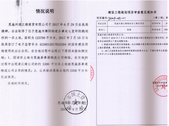 上图为恩施市国土局出具的易事通公司占用合法企业土地的情况说明。