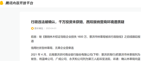 前言:继《撤销林木权证导致企业损失 1600 万,景洪市林草局被诉行政赔偿》之后续跟踪报道