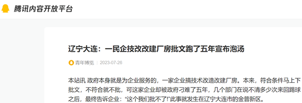 相关新闻:辽宁大连:一民企技术改造五年没跑下批文