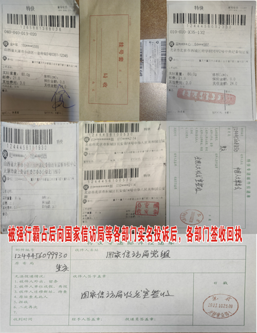 国家信访局、全国人大、中纪委、公安部、山西省省长等签收回执单