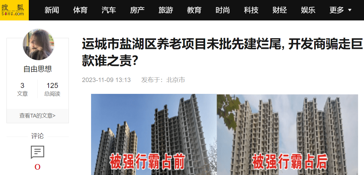 一、居佳养老项目未批先建,十年等待导致上亿工程款及部分农民工工资无着落。等来的却是运城市政府的疪护,监管严重缺失,致黄轩强行霸占无人问津。