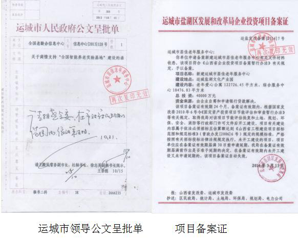 2015年,各大新闻媒体在接到投资商及农民工实名投诉后,前往运城市盐湖区,实地了解全国智能养老实验基地项目,当时就对该项目的审批手续存在很大质疑。该调查发现,该项目根本就没有审批,也就是说从2014年开工至2015年媒体监督时,没有合法的审批手续。明知该养老项目没有合法审批手续,那么全国智能养老实验基地开工典礼仪上为什么又有运城市委、政府及盐湖区相关领导人参加?难道相关政府领导及部门领导是真不知道该项目属未批先建吗?这完全不符情理吧?最后,通过舆论监督,盐湖区政府领导会同相关部门才将该项目审批结束,使未批先建的全国智能养老实验基地项目接近合法化。至今各项手续仍不齐全,达不到施工作业条件前题下,又被黄轩纠结恶势力強横覇占野蛮施工。