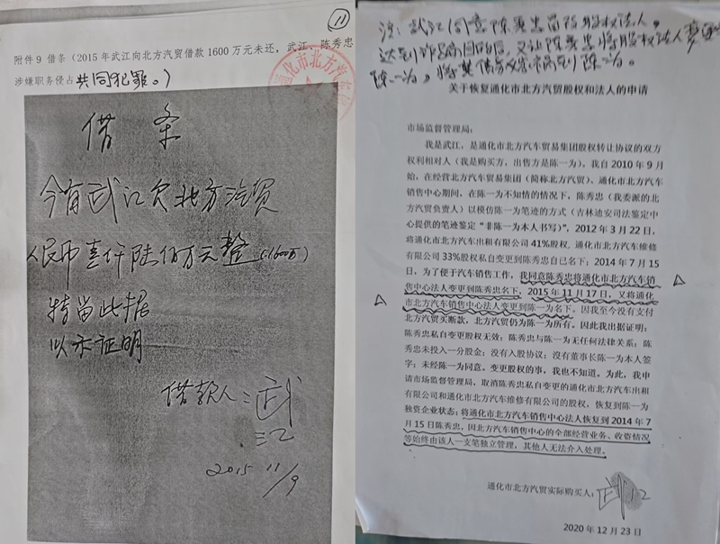 警方的这一说法遭到陈一为的强烈质疑:"转贷发生在2014年,而股权变更是在2012年,且我签字只是配合武江的经营工作,与股权转让毫无关联。武江本人都承认我对此不知情,司法鉴定也能证明签名是伪造的,仅凭转贷签字就推定我知情,这显然站不住脚。"更让陈一为不解的是,他提交的"陈秀忠侵占公司租金40万元、用公司资金77万元购房,2015年11月9日武江从北方汽贸挪用资金1600万元,涉嫌职务侵占犯罪"等关键证据,公安机关未作任何实质性调查便予以否定。