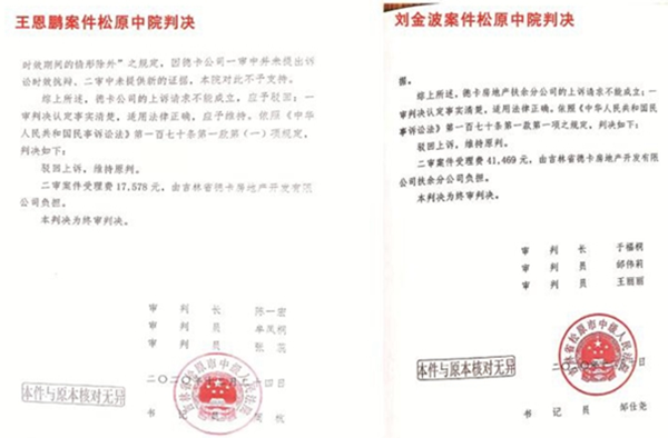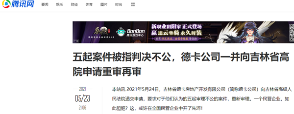 本站讯 2021年5月24日,吉林省德卡房地产开发有限公司(简称德卡公司)向吉林省高级人民法院递交申请,要求对于他们认为的五起审理不公的案件,重新审理。一个民营企业,如此胆肥?这,或许在全国民营企业中开了先河!