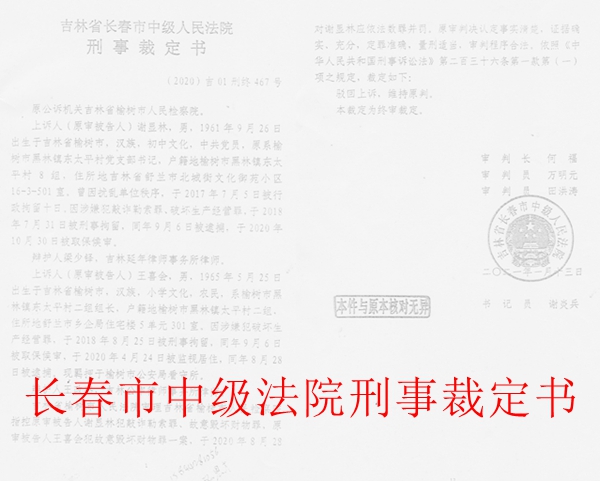 一审判决宣判后,原审被告人谢显林、王喜会不服,提出上诉。长春中院做出(2020)吉01刑终467号刑事裁定书,驳回了谢显林、王喜会的上诉,维持原判。