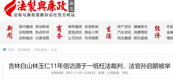 林玉仁11年信访诉求的焦点问题是,白山市中级人民法院的一纸《民事判决书》是枉法裁判。