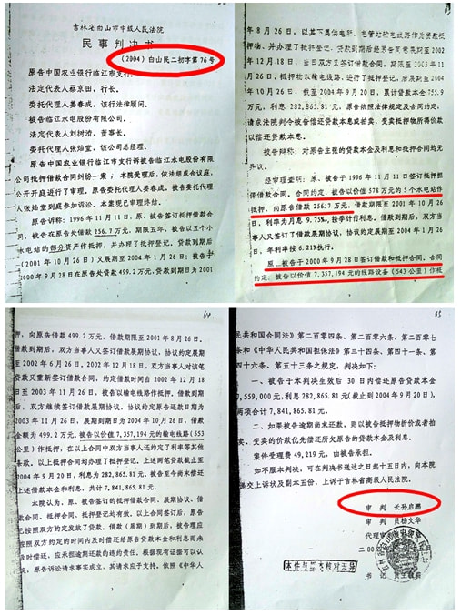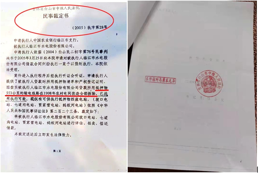 (2004)白山民二初字第76号《民事判决书》称:“原告中国农业银行临江市支行诉被告临江水电股份有限公司抵押借款合同纠纷一案,经审理查明: