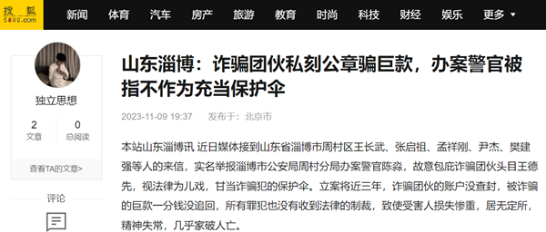 因此,媒体恳请淄博市纪检监察部门对此案进行调查处理,将犯罪嫌疑人绳之以法,将公安队伍里的害群之马革职查办,将受害人被诈骗的巨款追回,尽快给受害人一个答复,别伤了当地乃至全国老百姓的心,早日还社会一个公正。