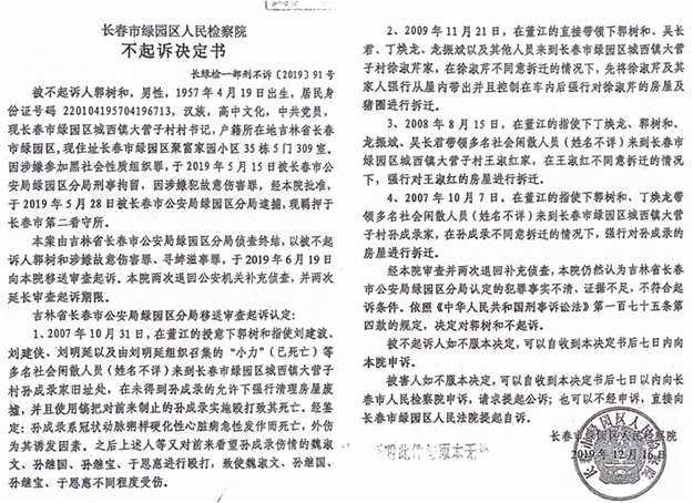 记者从长春市绿园区检察院不起诉决定书(长绿检一部刑不诉 [2019] 91号)中看到这样的字样: