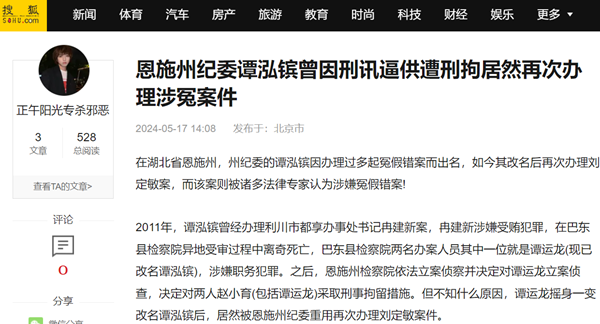 恩施州纪委谭泓镔曾因刑讯逼供遭刑拘居然再次办理涉冤案件