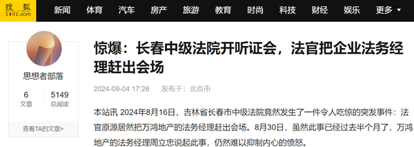 本站讯 2024年8月16日,吉林省长春市中级法院竟然发生了一件令人吃惊的突发事件:法官原源居然把万鸿地产的法务经理赶出会场。8月30日,虽然此事已经过去半个月了,万鸿地产的法务经理周立忠说起此事,仍然难以抑制内心的愤怒。