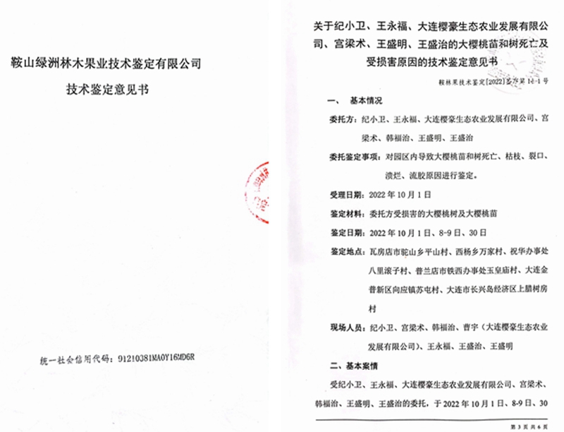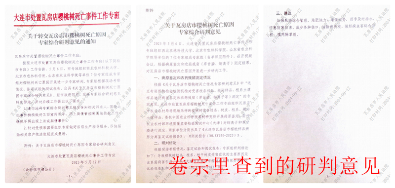 与此相反,令人感到不可思议的是,高兴利作为独审法官,却对没有任何机构盖章、没有任何专家签字承认的一张废纸十分认同。该判决书称:“2023年5月6日,大连市处置瓦房店樱桃死亡事件工作专班组织西北农林科技大学、北京市农林科学院、山东省农业科学院等单位7位专家组成专家组对樱桃树死亡原因开展研判,专家组根据现场考察情况、鉴定试验和测试报告,出具了《关于瓦房店市樱桃树死亡原因专家综合研判意见》(简称《研判意见》),研判结论为导致樱桃树枝条、根系、树干树皮受害症状的主要原因是由真菌病害引起。”高并据此判决李广军构成名誉侵权。目前,这份《研判意见》早已在网上被骂的狗血喷头,在多家媒体的报道中均能看到,是一个没有任何机构盖章承认,也没有任何专家签字认账的废纸,被广大果农和律师们认为是假证、伪证,是大连市农业农村局为了袒护大连殿龙出具的遮羞布!目前,受害的广大果农还在不断的维权,不断的要求严惩大连市农业局相关官员。