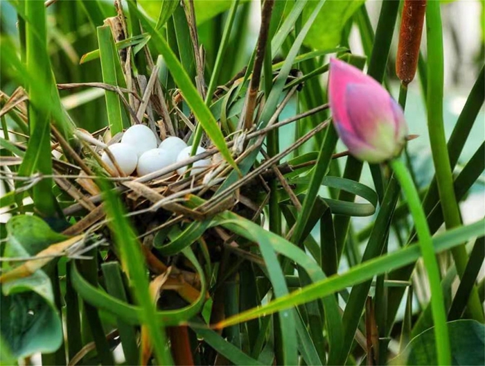 本站讯 7月2日,在山东省郯城县马头镇采莲湖社区采莲湖畔的田园综合体的万亩荷花种植园区内,许许多多的水鸟在这里安家落户孕育“宝宝”,成为游客观赏的另一道风景。