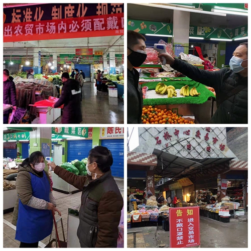 抓实清扫消毒。督促农贸市场严格遵守卫生防疫要求,执行并抓实抓细“一日一消毒、一日一清洗”和经营者、消费者入市体温测量和佩戴口罩的防控措施,尤其是强化了主城区7个农贸市场落实活禽休市、参与者的体温测量和口罩佩戴及休市前后的清扫消毒工作。同时要求消毒清扫人员做好自我防护。