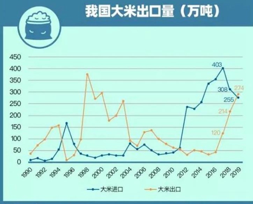 同样是在去年,中国出口的稻谷达到272万吨,比进口稻谷多出12万吨,是5年来第一次成为稻谷净出口国。