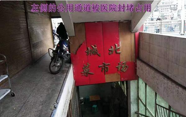 博爱医院门诊楼下菜市场入口被医院封堵占用