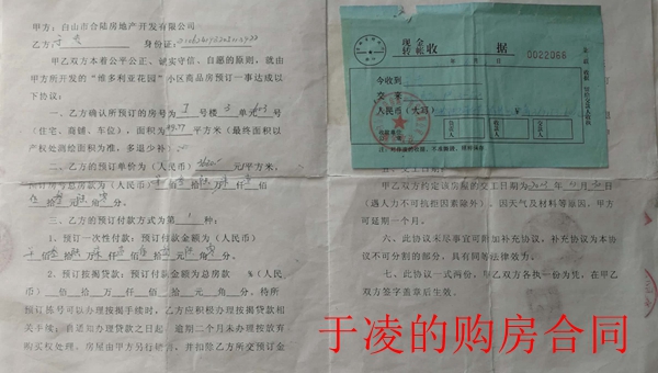 购房户们还同时给记者提供了大量的购房合同、购房交款收据等。