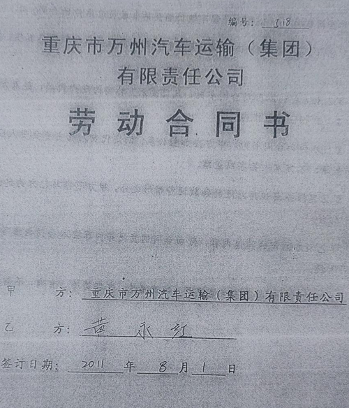 上图:黄永红与重庆万州汽车运输公司签订的劳动合同