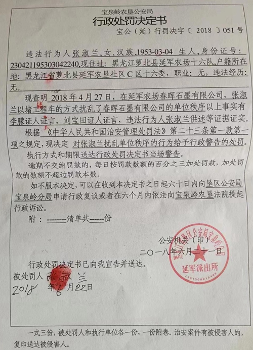 老人在来信中说:我叫张淑兰,今年70岁,是黑龙江省宝泉岭农垦延军农场20队居民,现实名举报萝北县云山东方(春晖)石墨矿,在扩建过程中存在非法占有林地、强行霸占老百姓林地、给我们造成巨大的经济损失等行为,石墨矿不仅破坏了当地的营商环境,而且还在社会上造成了极坏的影响。
