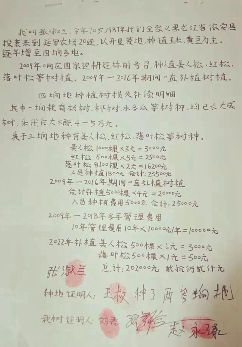 张淑兰:我植树在前,应该得到补偿