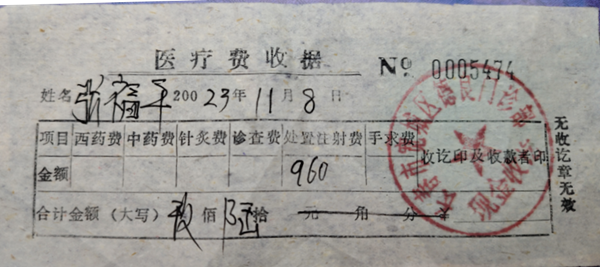 据吉林大学第一医院乐群院区主治医师医嘱:张福平右手肌腱康复需要3个月修养期。张福平说他平日里每天工时费能挣340元,由于右手伤痛,他如今一筹莫展。