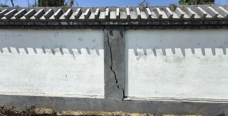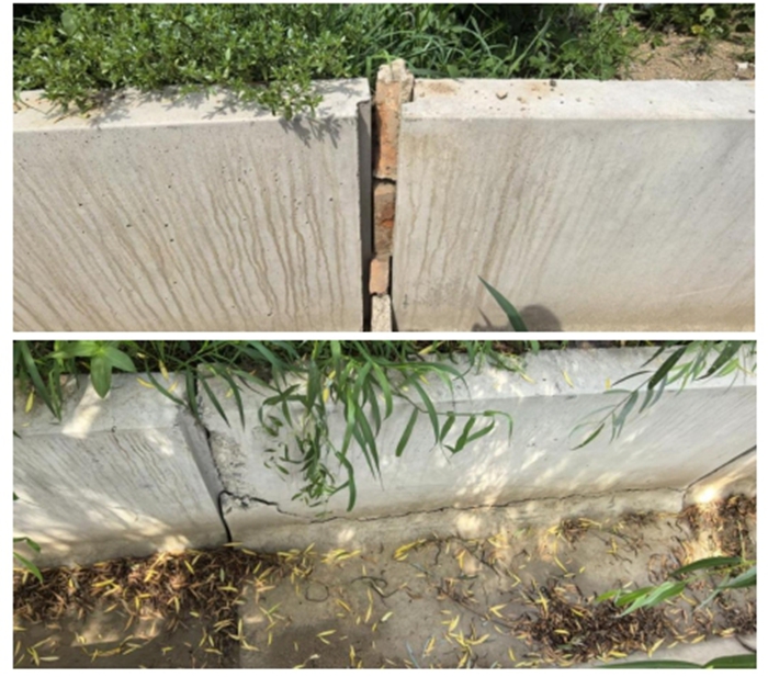 记者随机采访了多位附近村民了解到,该地除了边沟建设存在严重质量问题外,村内的围墙等基本建筑的质量安全问题也让大家忧心忡忡。“你看我家围墙都错位了,墙体全是裂缝,墙体变形导致侧压,自家的大门都难以打开。”在几名村民带领下,记者看到,多个围墙有巨大裂缝,甚至可以看到墙体内部,让人怵目惊心。