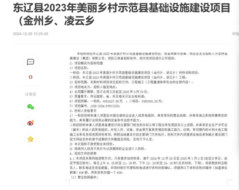 随后,记者登录网站查询得知,近年来“美丽乡村示范县”建设项目仅金州乡资金就达近千万,在东辽县投资资金达近亿元。均由吉林金展建设(集团)有限公司发包,此公司股东为东辽县财政局。