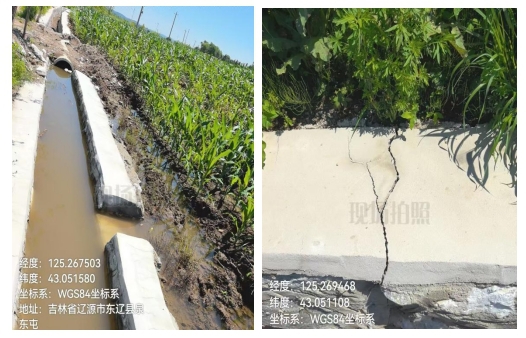 近日,针对上述问题,记者奔赴东辽县金州乡双福村附近进行走访。在一处刚修完的边沟旁,记者看到,其上水泥遍布裂痕,连接处的水泥管由于施工不到位,导致边沟内的水无法排出,已经严重淤堵并漫到周边农田内。