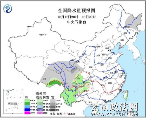 17日20时至18日20时,黑龙江中东部、青海南部、西藏东部、川西高原、云南东北部、贵州西部和北部等地有小到中雪或雨夹雪;西藏东南部、四川中部、云南大部、贵州中部等地有小到中雨。内蒙古中东部、辽东半岛、山东半岛有4~6级风。南海东部和西南部有8~9级、阵风10~11级的大风,台湾海峡、南海西北部和中西部将有7~8级、阵风9级的东北风。