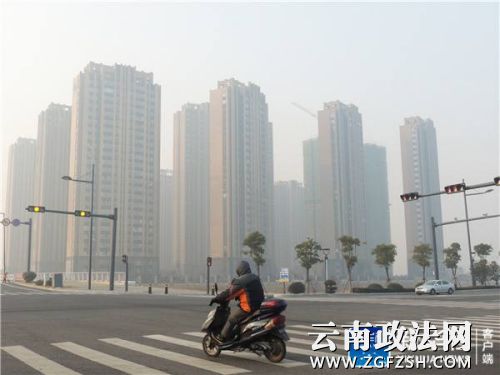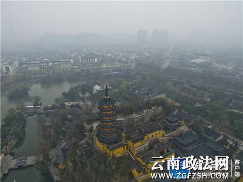 ↑12月15日拍摄的被雾霾笼罩的江苏省镇江市。新华社发(陈岗 摄)