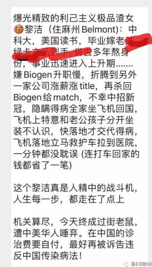很快,热血澎湃的网友们便看明白了,她并不是因为疫情其间心怀祖国而回归,也不是在美国受到虐待没人救,而是因为担心马萨诸塞州当地医药费贵又听说在国内只要确诊就是“免费”,才隐瞒病情逃了回国……