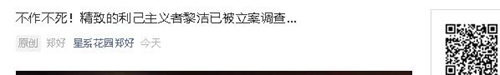 不作不死!精致的利己主义者黎洁已被立案调查…