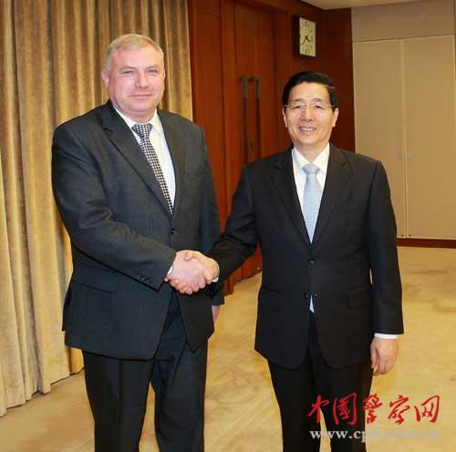 郭声琨说,建交23年来,中白关系始终健康稳定发展。2013年中白建立全面战略伙伴关系,开启了双方合作的新阶段。希望双方认真落实两国元首达成的共识,不断加强各领域合作,进一步深化两国友好关系。 郭声琨表示,近年来,中白执法安全部门业务合作稳步推进,合作成果显著。当前,国际和地区安全形势复杂多变,中白两国面临共同威胁和挑战。中国公安部愿与白执法安全部门密切协调配合,着力提升双方在打击“三股势力”和毒品犯罪等领域的合作水平,共同维护两国和地区安全与稳定。 梅茹耶夫表示,白方高度重视发展与中国公安部的执法合作关系,愿与中方一道努力,不断拓宽合作领域、提升合作水平。 公安部部长助理孟庆丰参加会见。 |
